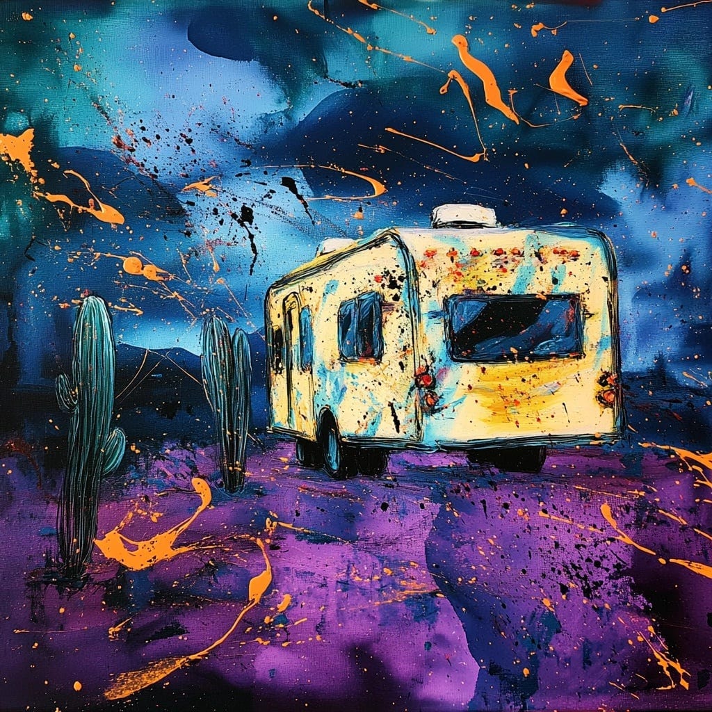 Lately Iâve been catching myself daydreaming here in this RV. Iâm imagining my new business taking off, with founders and startups hiring me left and right to write unreasonably spicy manifestos for them. And how delicious it would be if this business grew beyond me, beyond my lone-wolf paradigm, into a boutique agency of sorts, where I work alongside a handful of talented homies and we serve the largest, most ambitious startups in the world. Like before, this path is possible, even practical, if I apply myself in the years ahead. Step by step. Stone by sculpted stone. I can also use this vision to escape this season of life, this moment where everything has gone wrong. With rains pouring and resentments building, I can escape into fantasy, or I can stare reality in the face, then take one sludgy, imperfect step after another. The choice is mine. Take a deep breath.