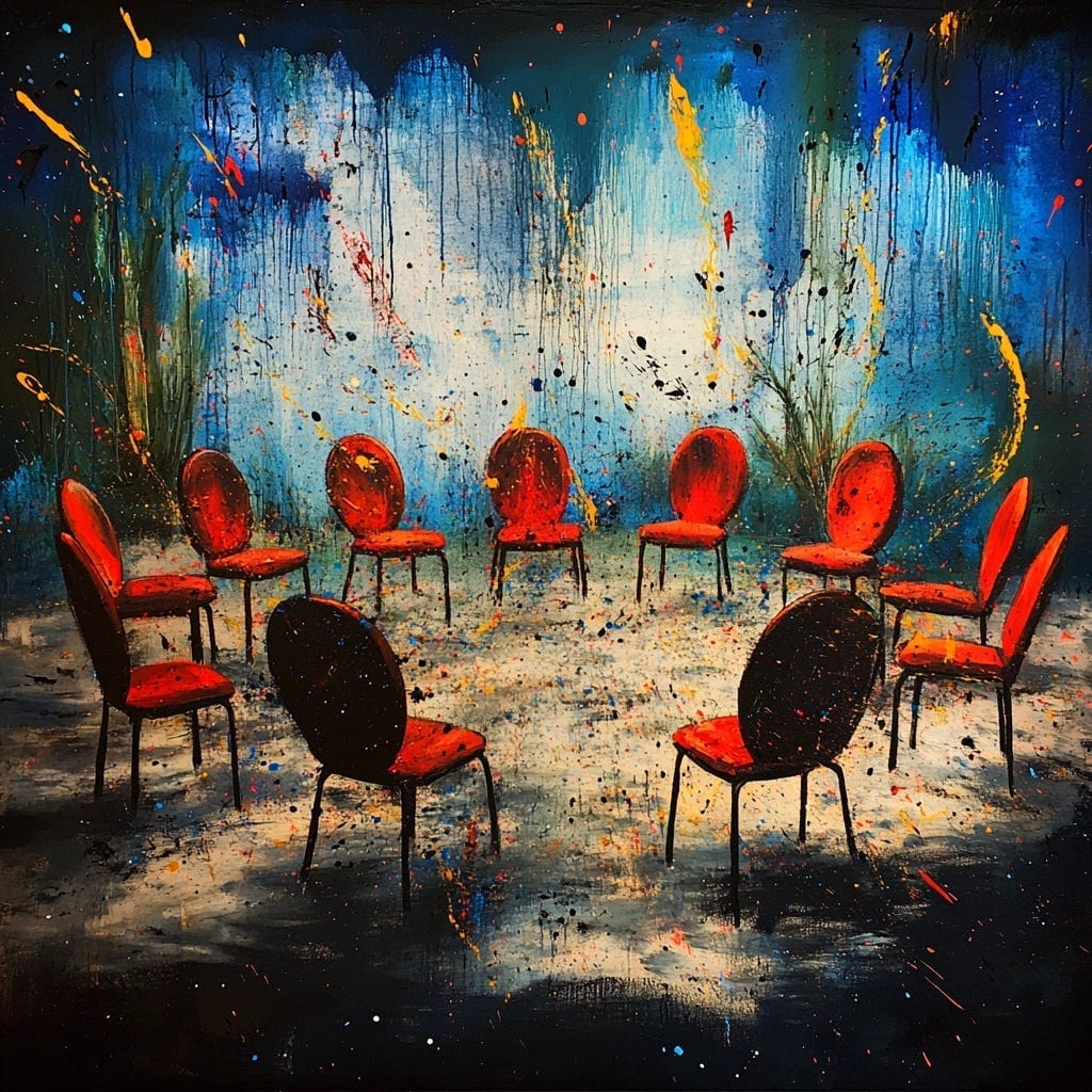 On July 1st, 2024, I drive to an Episcopalian church on the east side of Tucson. I sit out in the parking lot for a solid dozen minutes, second-guessing myself, until I work up the gumption to walk into the annex building behind the chapel. In the center of the room are eight chairs, upholstered in rough red fabric, placed in a circle. This is my first ever meeting of Overeaterâs Anonymous. The same inner voice that guided me towards writing this letter also led me here. Remember. Iâm greeted warmly by a trio of elderly women, along with a middle-aged dude who will later become my sponsor. Earlier that week Iâd gone off the rails with food, taken a brief trip up shame mountain, and found myself back in a familiar position. As I stare up at grandiosity, I know it is time for something new. Tick tock.
